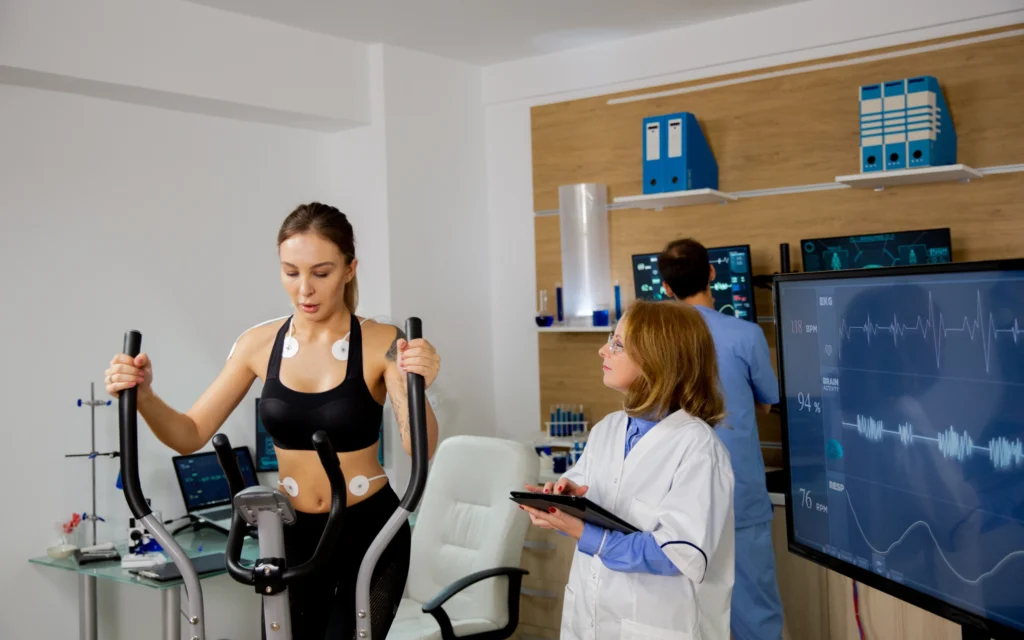 Realizamos ejercicios controlados para observar tu capacidad física y la respuesta del organismo ante un esfuerzo moderado.